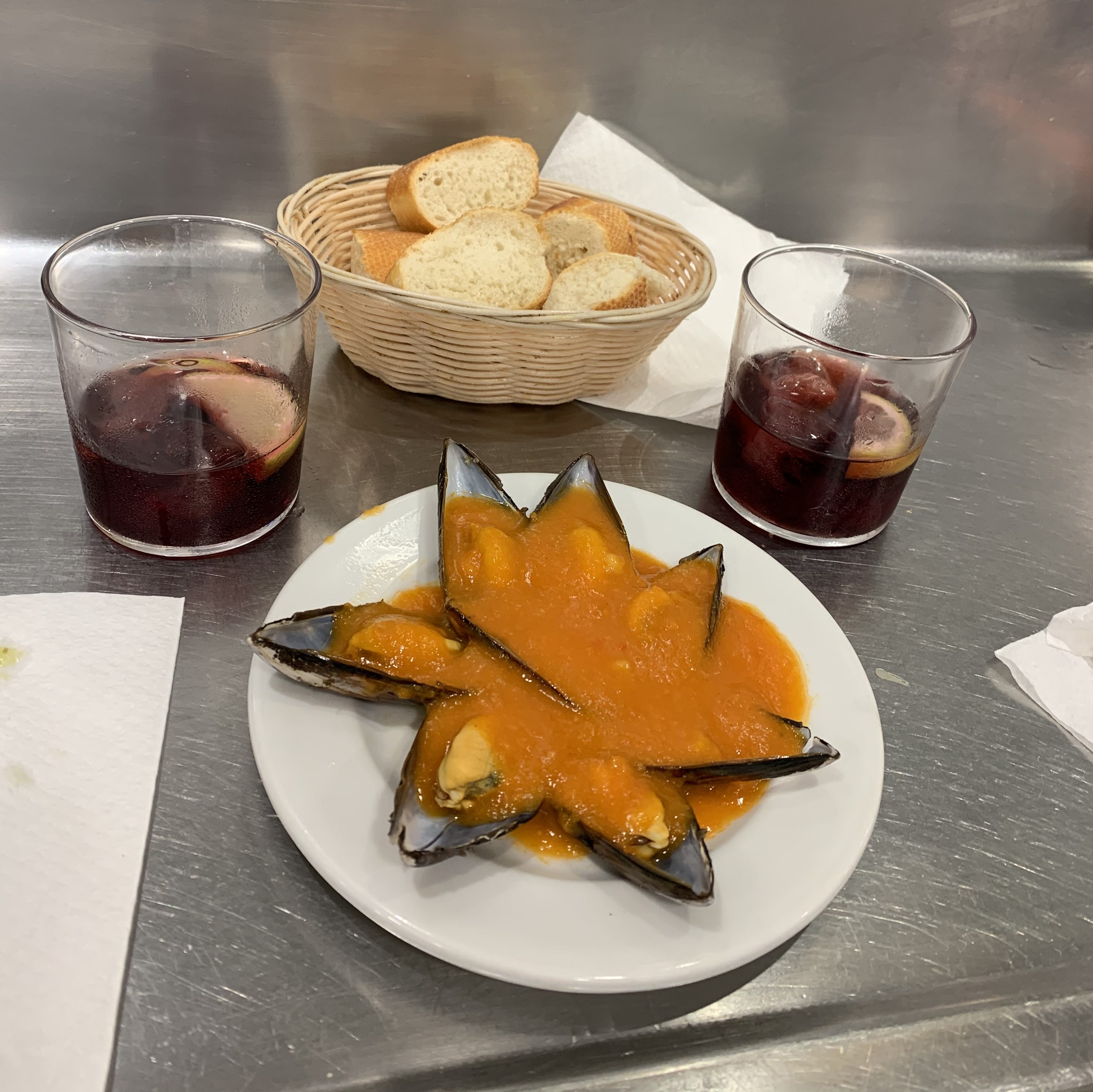 La Mejillonera is special bar that differentiates from the other Pintxo bars. Interior is snackbar alike with just a few mussel dishes, patatas bravas and beer & sangria. Waiters yell their order in person to the kitchen. Although the mussel dishes are excellent, it was the unique patatas bravas sauce that has made their name in the city.