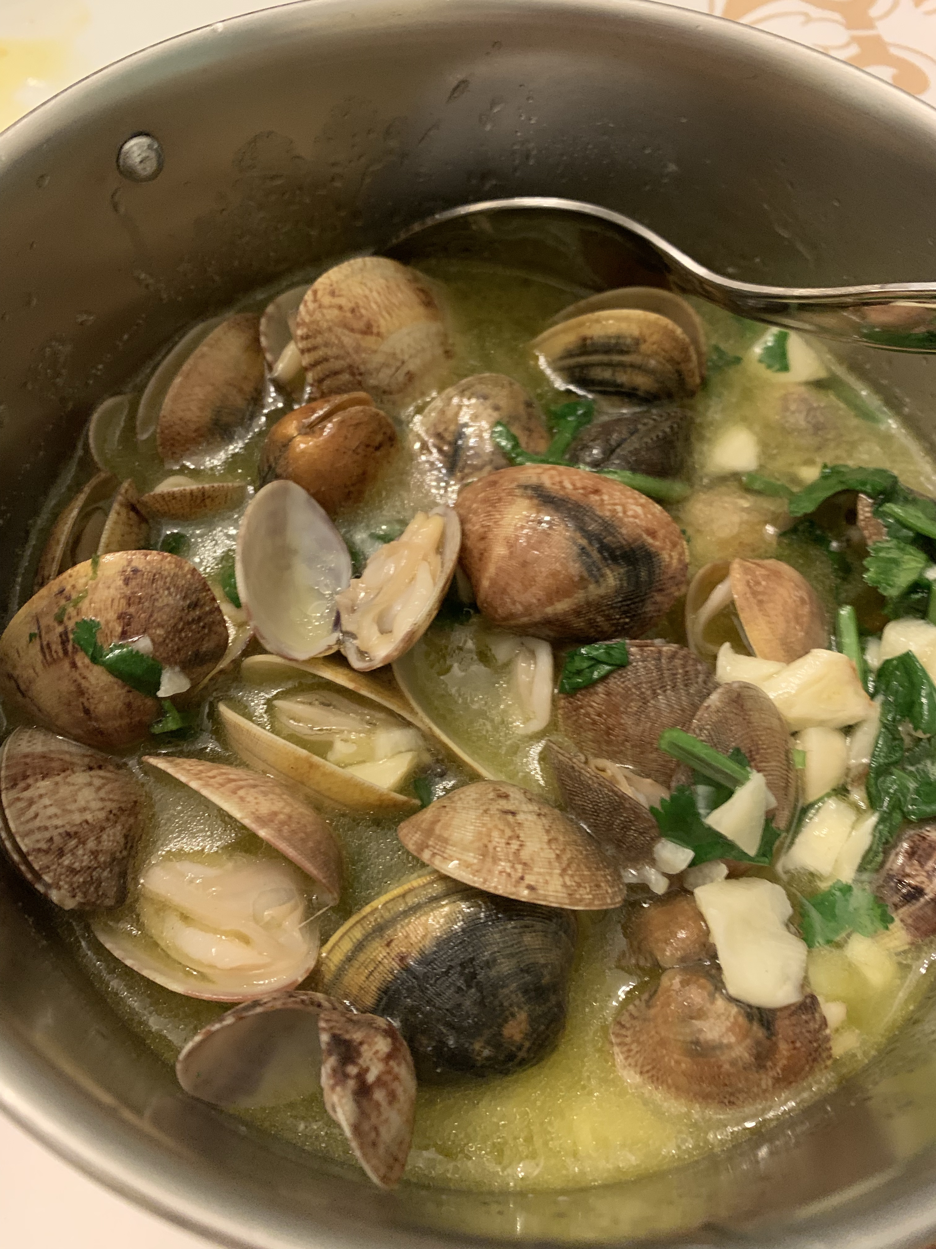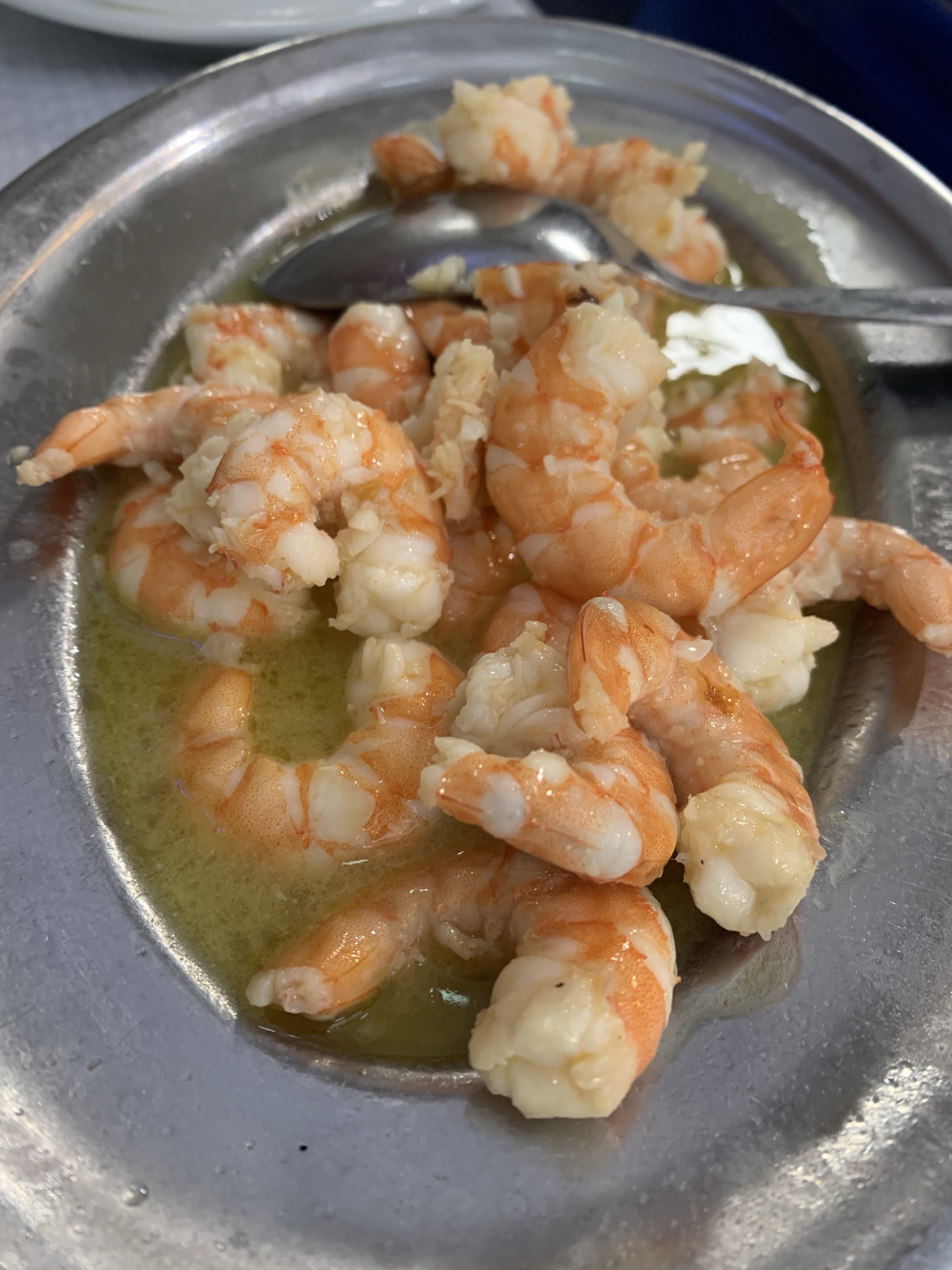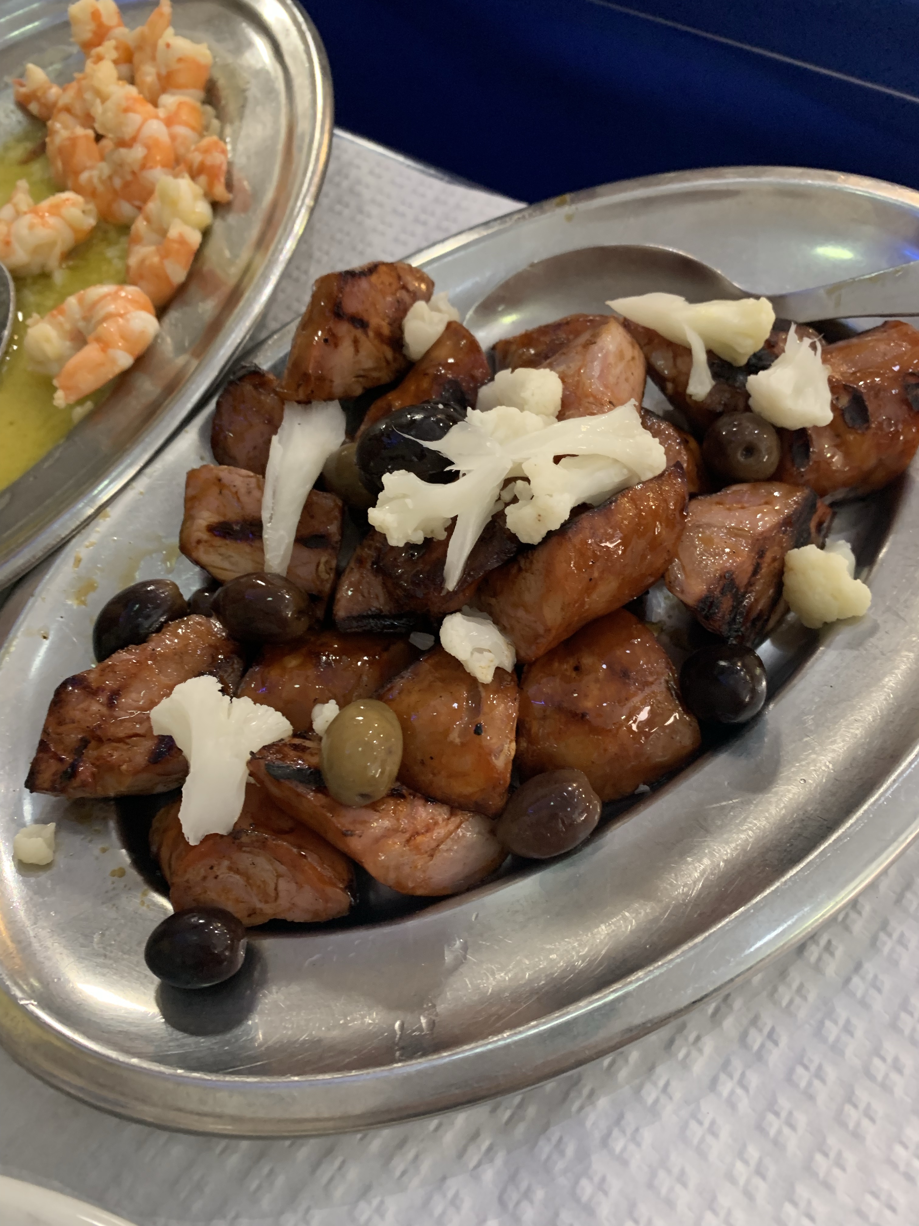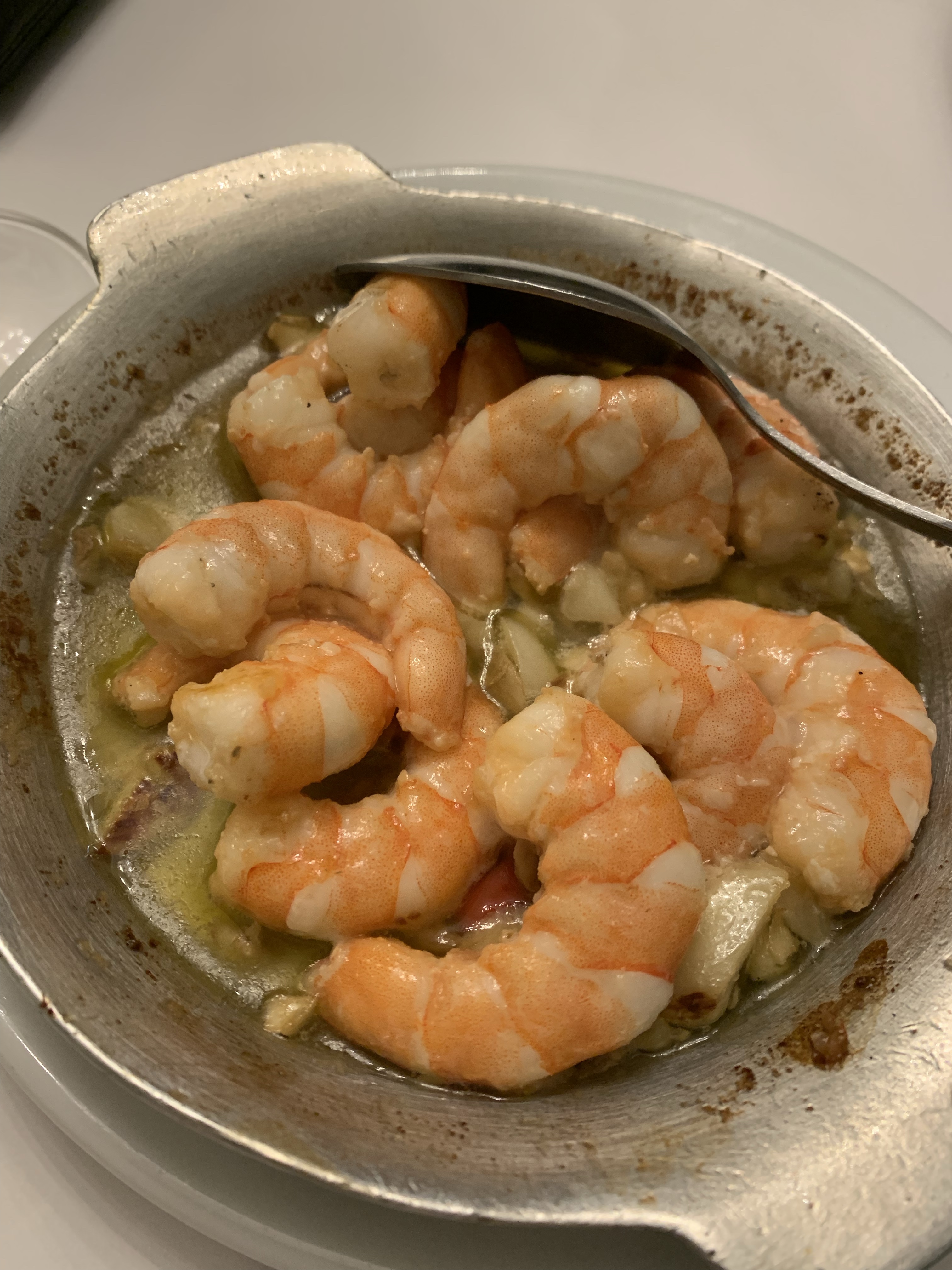 Price: €13, 49 Gambas al ajillo, €14,49 Ameijoas Bulhao,