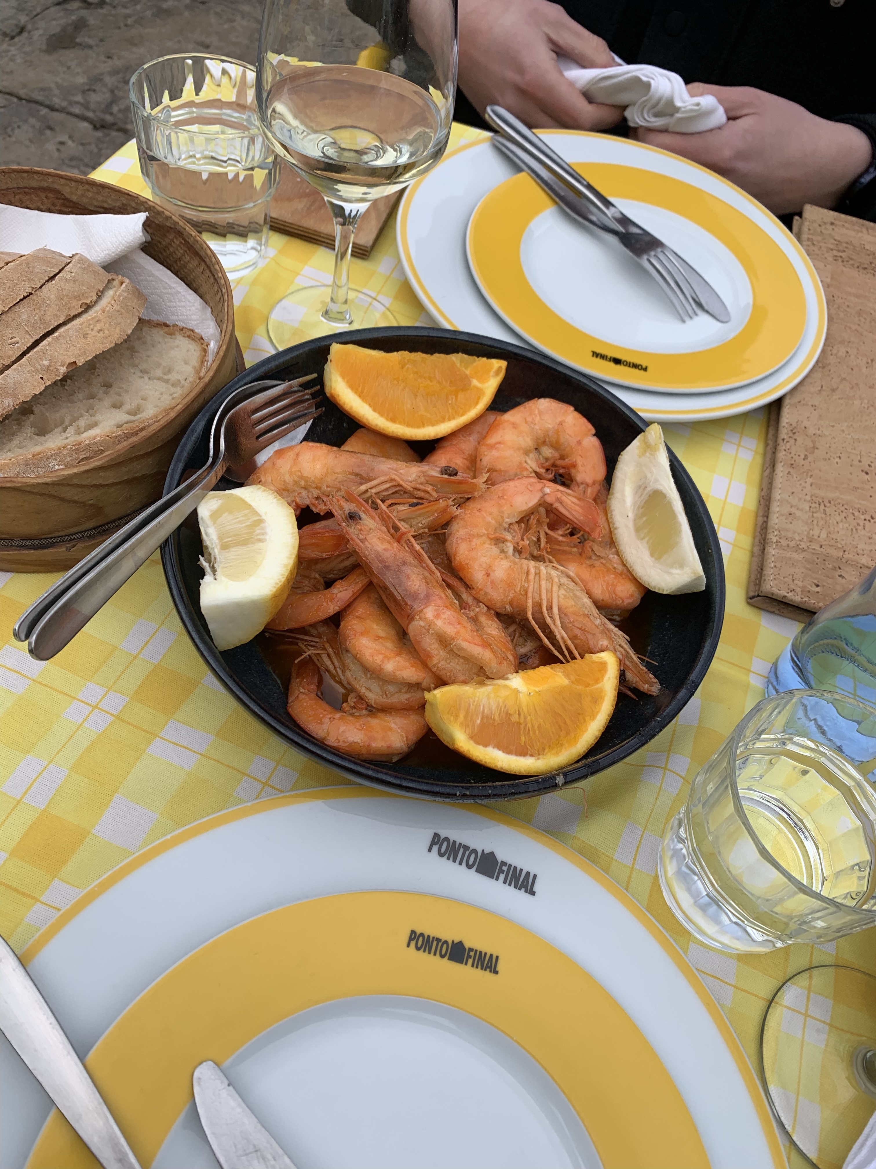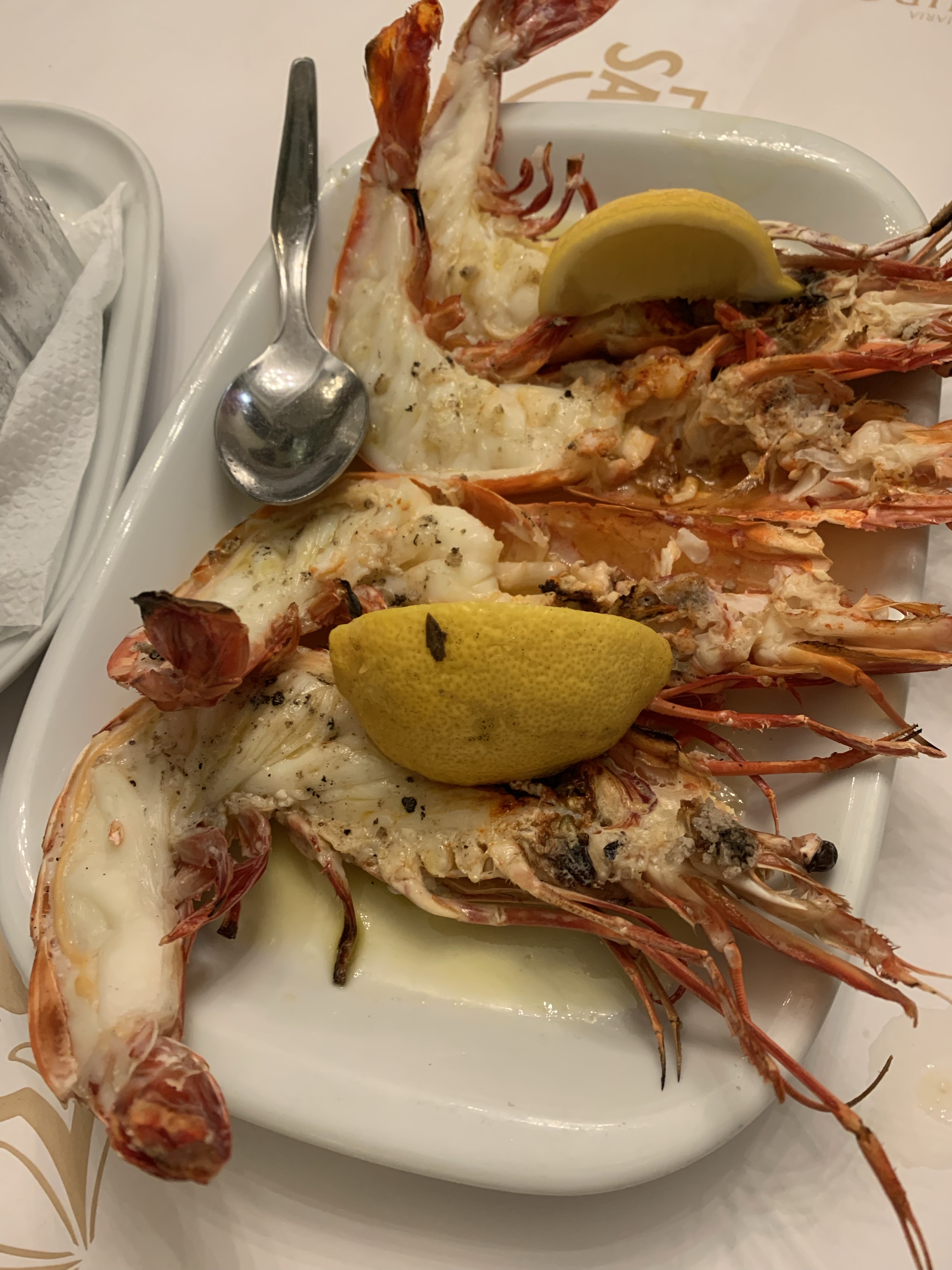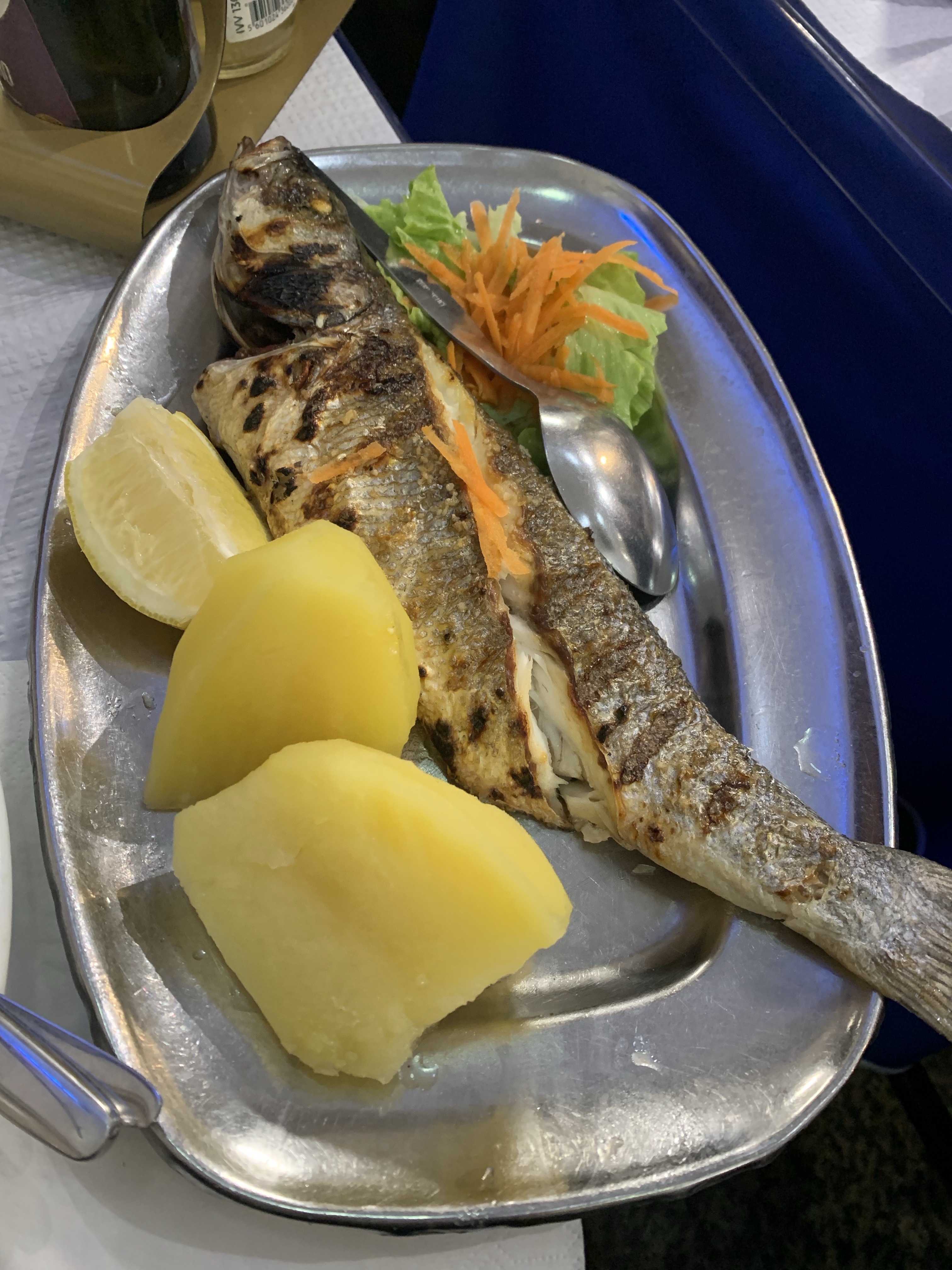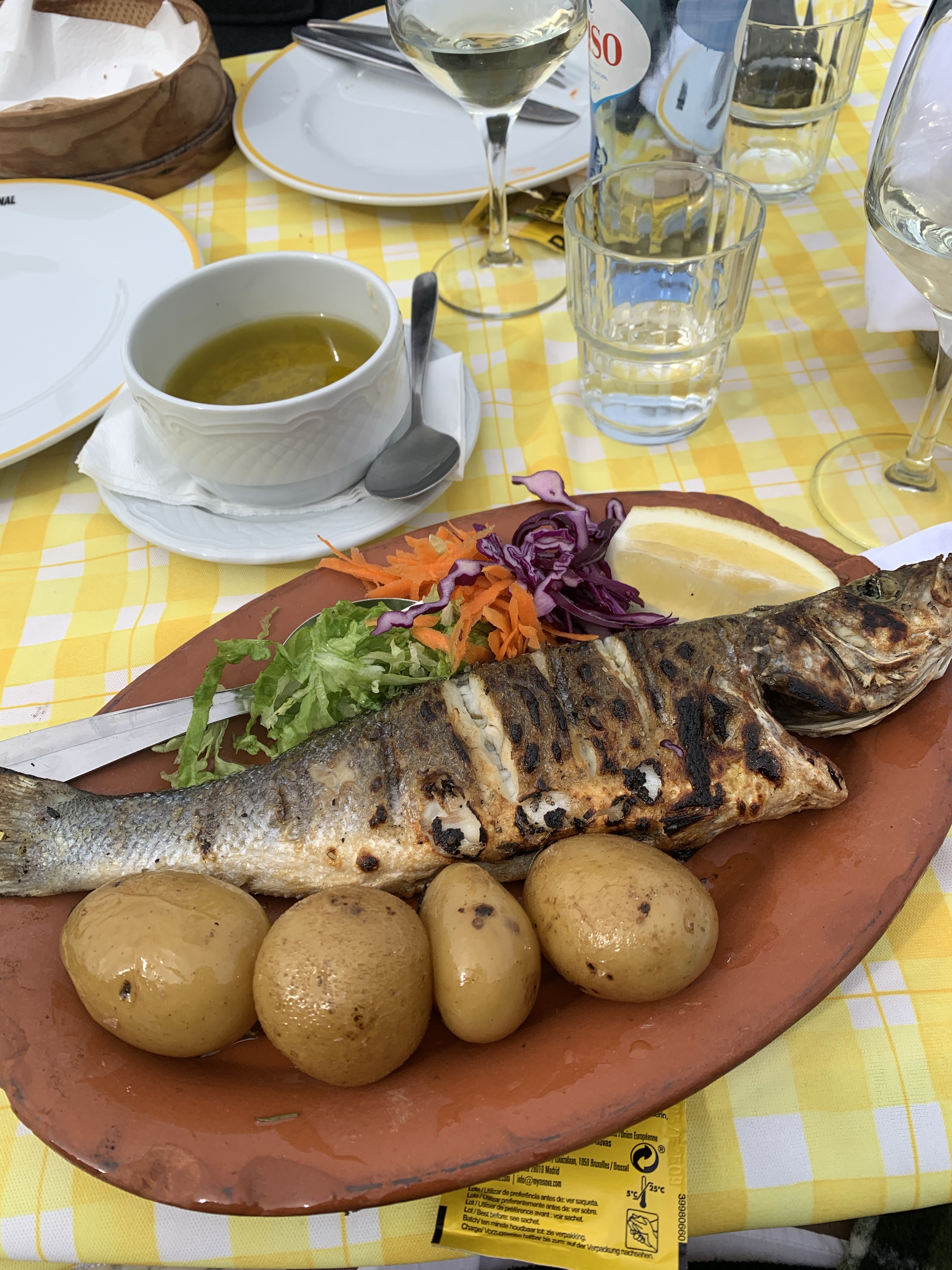 Price: Grilled bass €19,50, Cameroes A Passa-me Outro €27