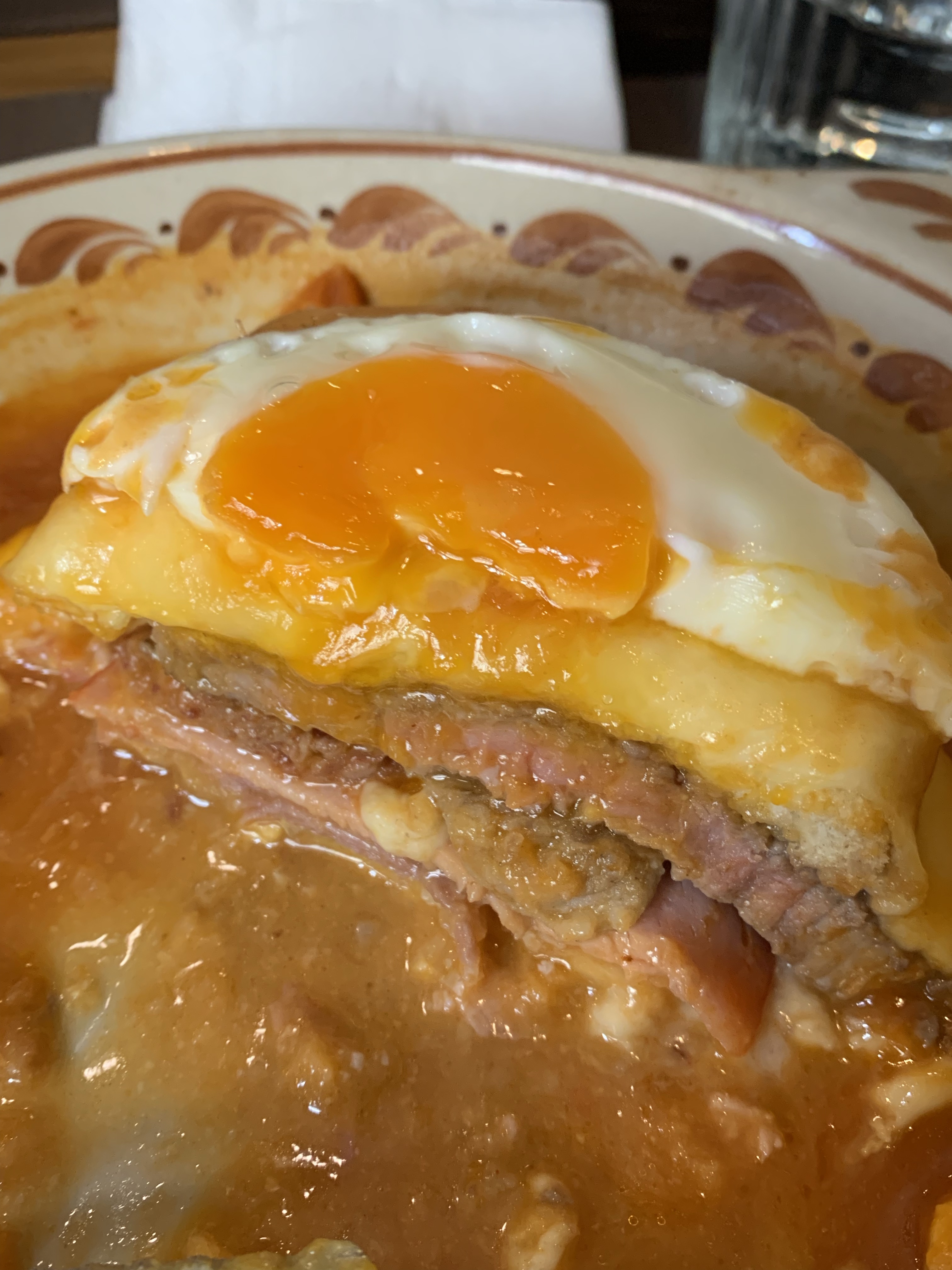 Of all the places we tried the Francesinha, Bufete Fase has absolutely been our favorite. The place feels authentic, the service is friendly and they only have this one of kind Francesinha on the menu. We loved that you could order the Francesinha spicy or non-spicy and that the fries were served on the side, which prevented them of getting soggy. Also we liked that during eating the sandwich the waitress would ask for a refill of our sauce. All with all definitely our number 1 recommendation for the Francesinha in Porto!