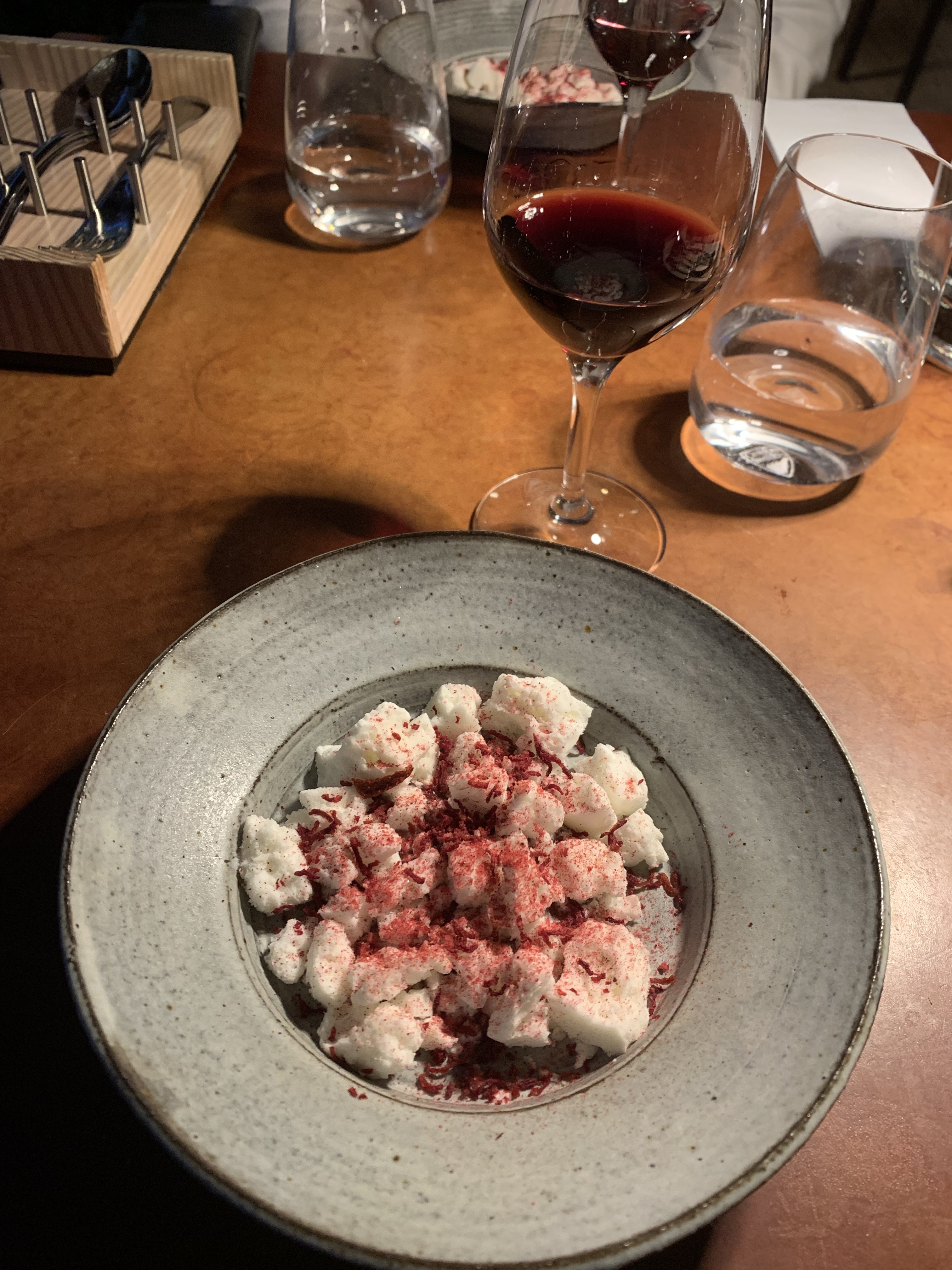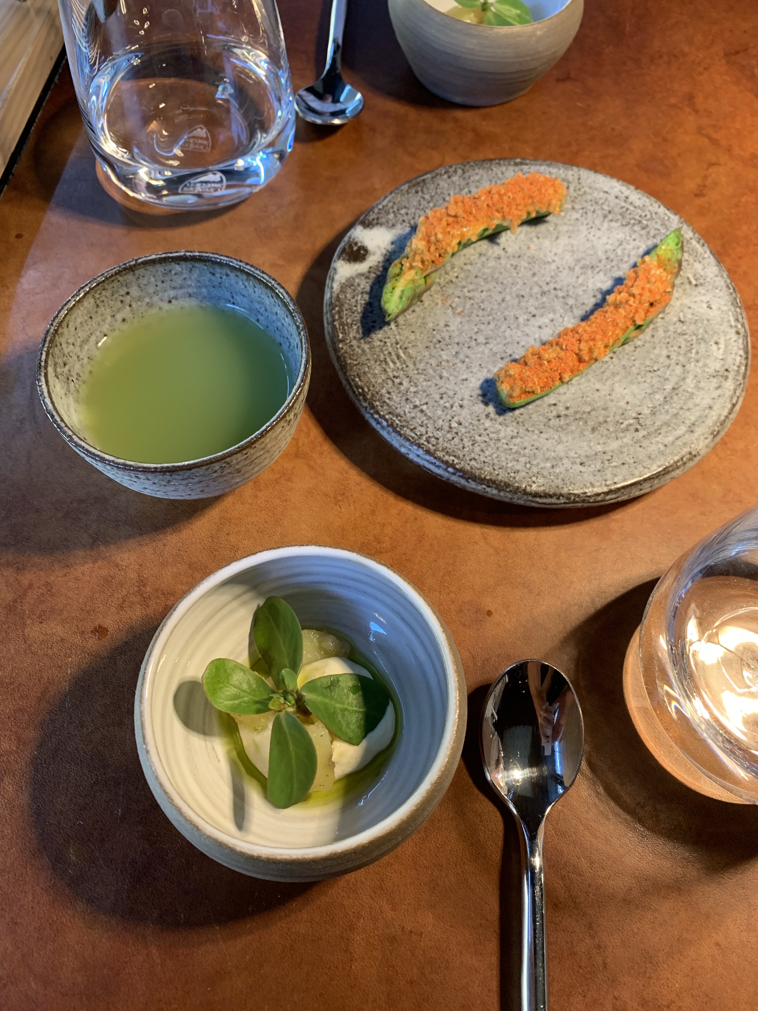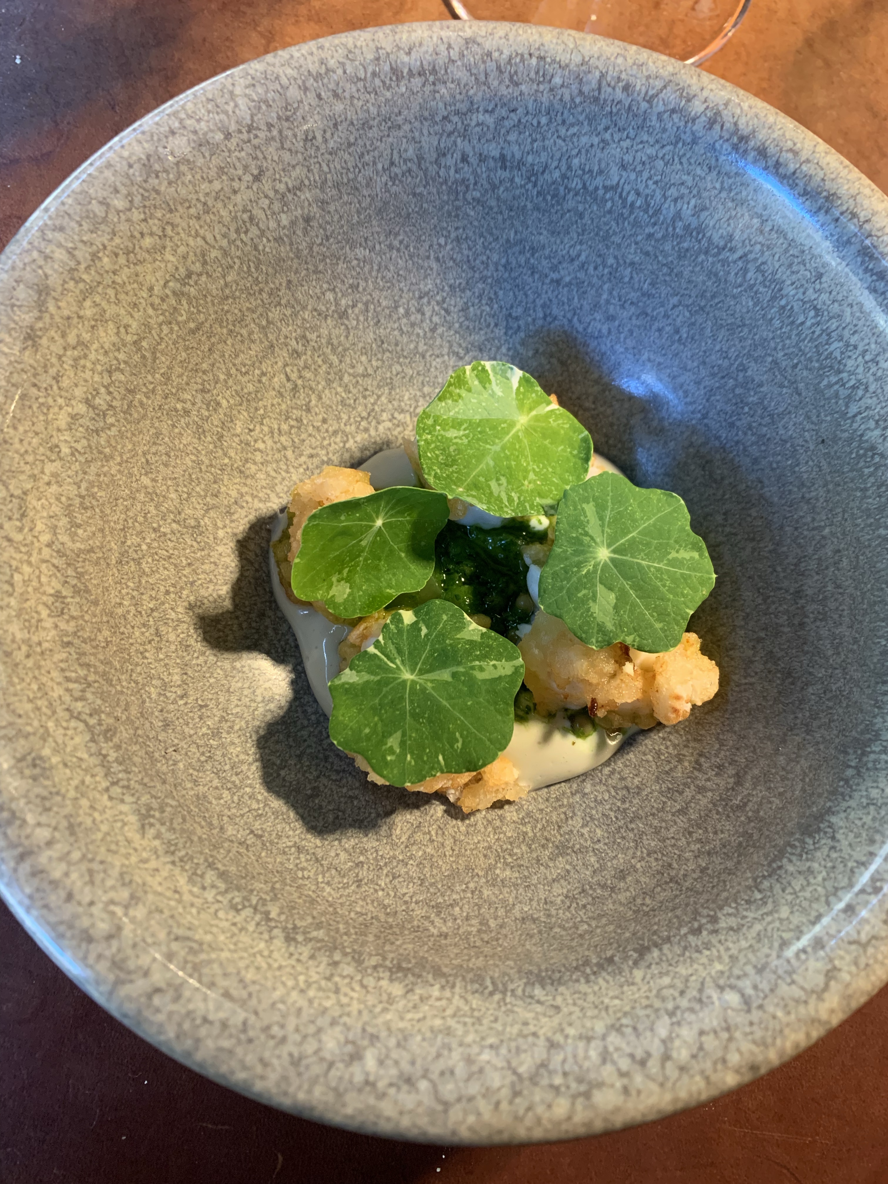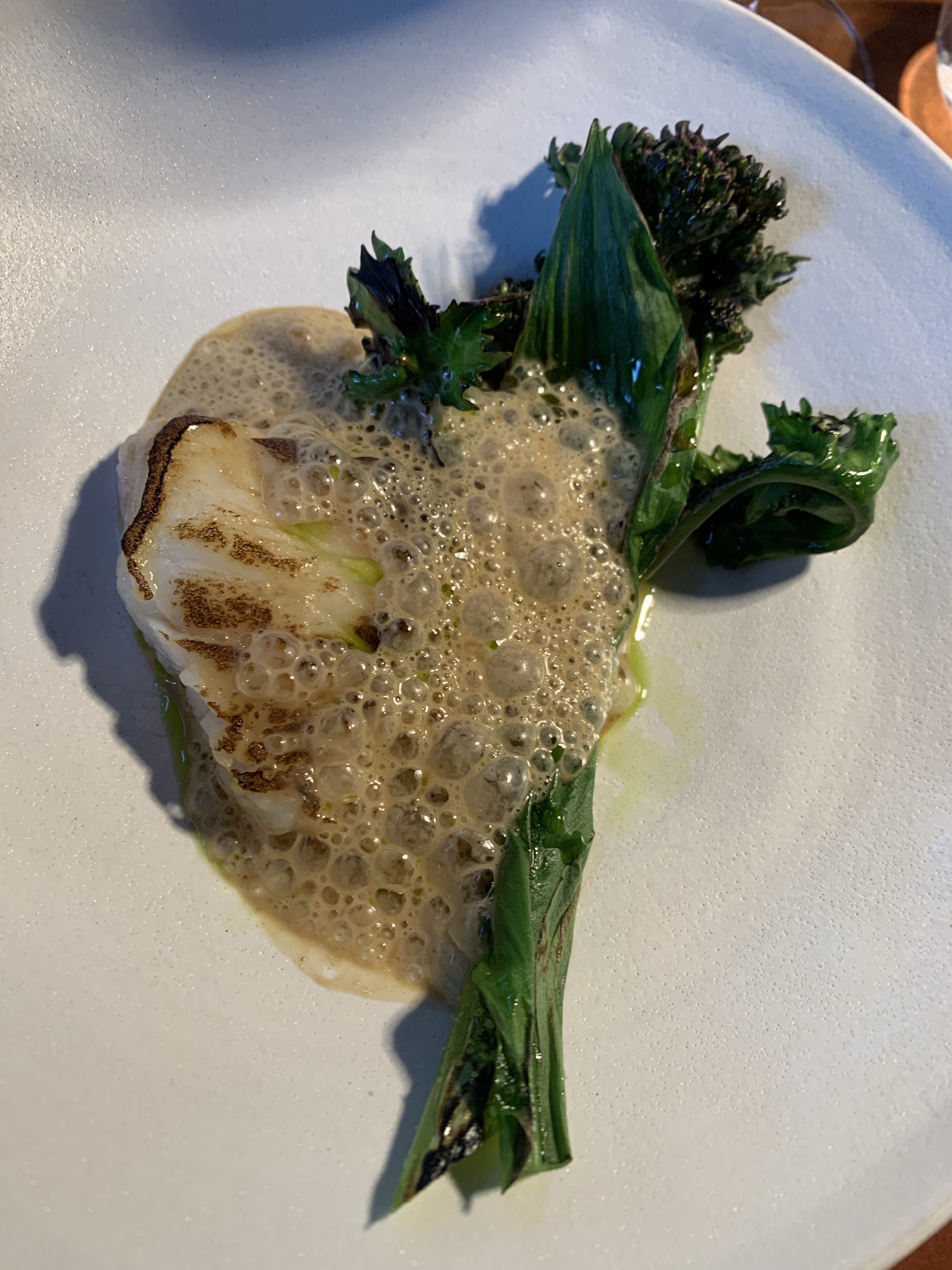 Our dining experience at the restaurant was truly delightful, indulging in a magnificent 7-course menu that left us utterly satisfied. The waitresses were friendly and attentive throughout the entire evening, enhancing our enjoyment. Before the course menu commenced, we were treated to a trio of tantalizing amuse-bouches: an invigorating asparagus and lovage juice, asparagus with dried tomato crumble and potato emulsion, and oysters with Portlak. Each small plate was not only delicious but also visually stunning. A homemade sourdough bread accompanied by churned butter further elevated our culinary journey. The only minor disappointment was that we were not offered any drinks, apart from water, until the next course. Our first dish featured a fresh mackerel with lemon verbena and cucumber, accompanied by the start of our carefully curated wine menu. A delectable tostada with lumpfish roe, sorrel, and horseradish followed suit. The highlight of the evening was undoubtedly the fried langoustine with green tomato and coriander seeds, which captured our palates with its exquisite flavors. A vegetarian delight arrived next, featuring white asparagus, chervil, a butter sauce, and delicate shaved raw champignons. Ling with ramson and a Miso foam continued to impress. A refreshing pre-dessert of grated apple with walnut emulsion and marjoram provided a delightful palate cleanser. Opting for the additional cheese plate, we savored a Swedish cheese accompanied by a flavorful moonseed cracker. The grand finale arrived in the form of a frozen goat’s curd with raspberry and dulce, a perfectly balanced dessert that left us craving for more. The meal concluded with a homemade blackcurrant toffee, adding a sweet and satisfying ending to an exceptional dining experience.