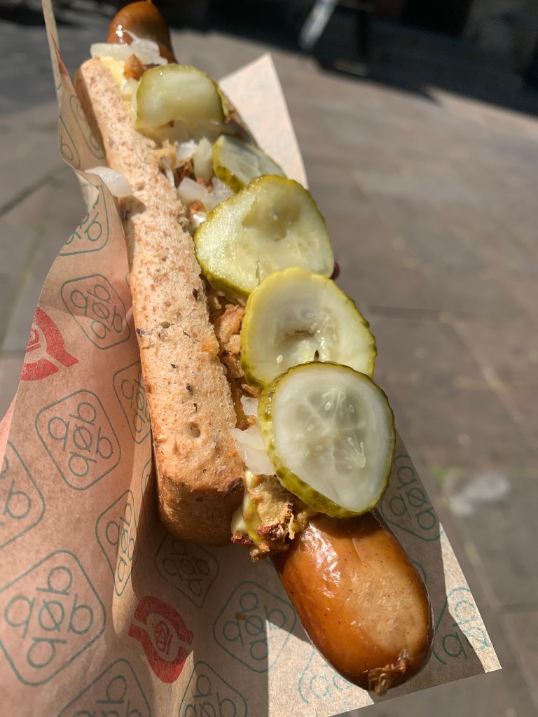 When in Copenhagen, a visit to this gourmet Polse (Danish hot dog) stand is an absolute must. DØP stands apart with its exceptional selection of gourmet meats, featuring options like cheese-infused sausages, zesty spiced beef, and even savory goat sausages. During our visit, we opted for the Spicy Beef variety, a decision we thoroughly enjoyed. The standout feature of DØP’s hot dogs is the sourdough-based bun, crafted from a blend of whole wheat and nutrient-rich linseed. Complementing the delectable sausages, we adorned our hot dogs with a medley of toppings, including tangy mustard, classic ketchup, and the signature remoulade. Additionally, the indulgence was elevated with the addition of crispy fried onions, zesty fresh onions, and a touch of zingy pickles.