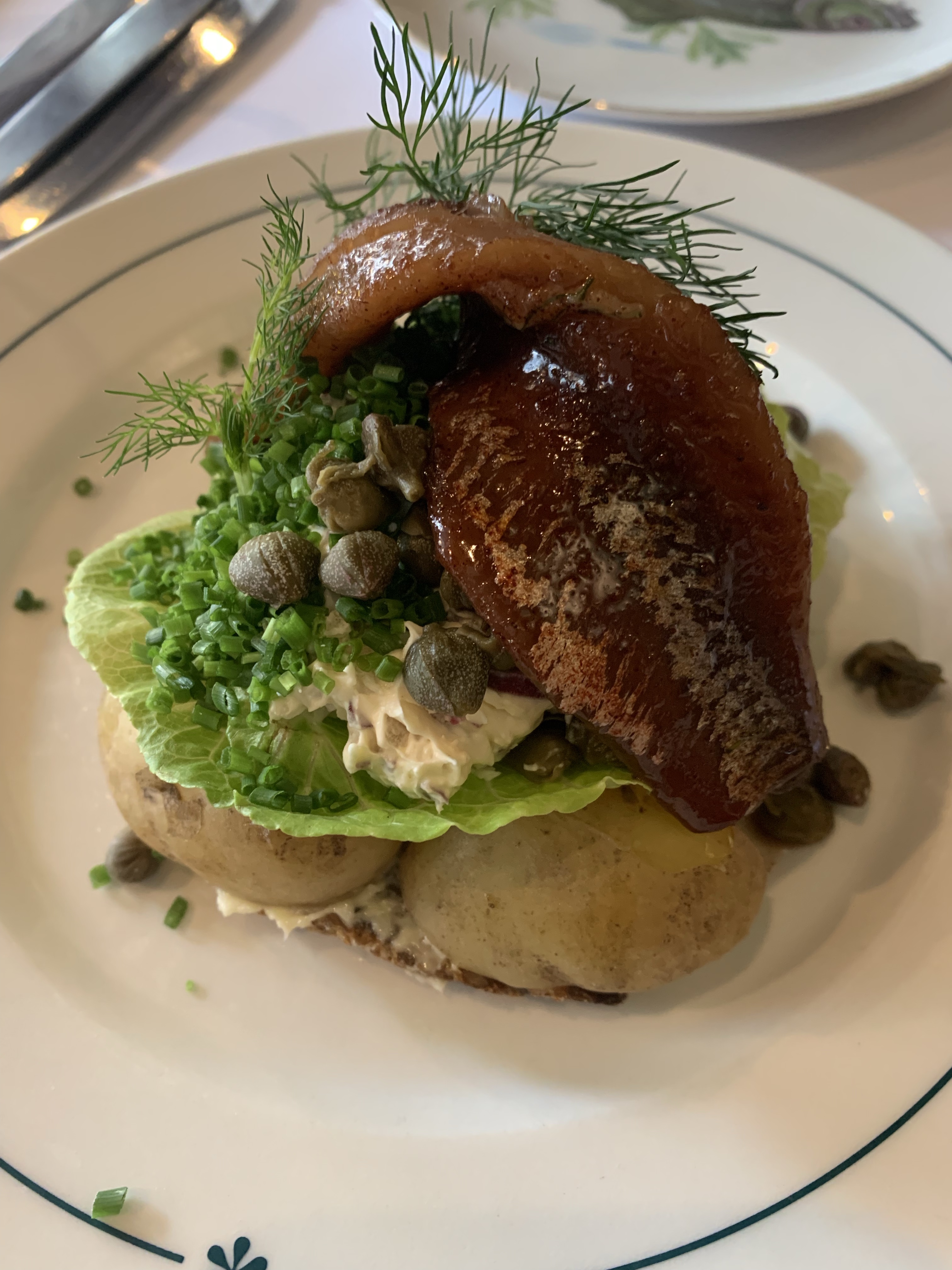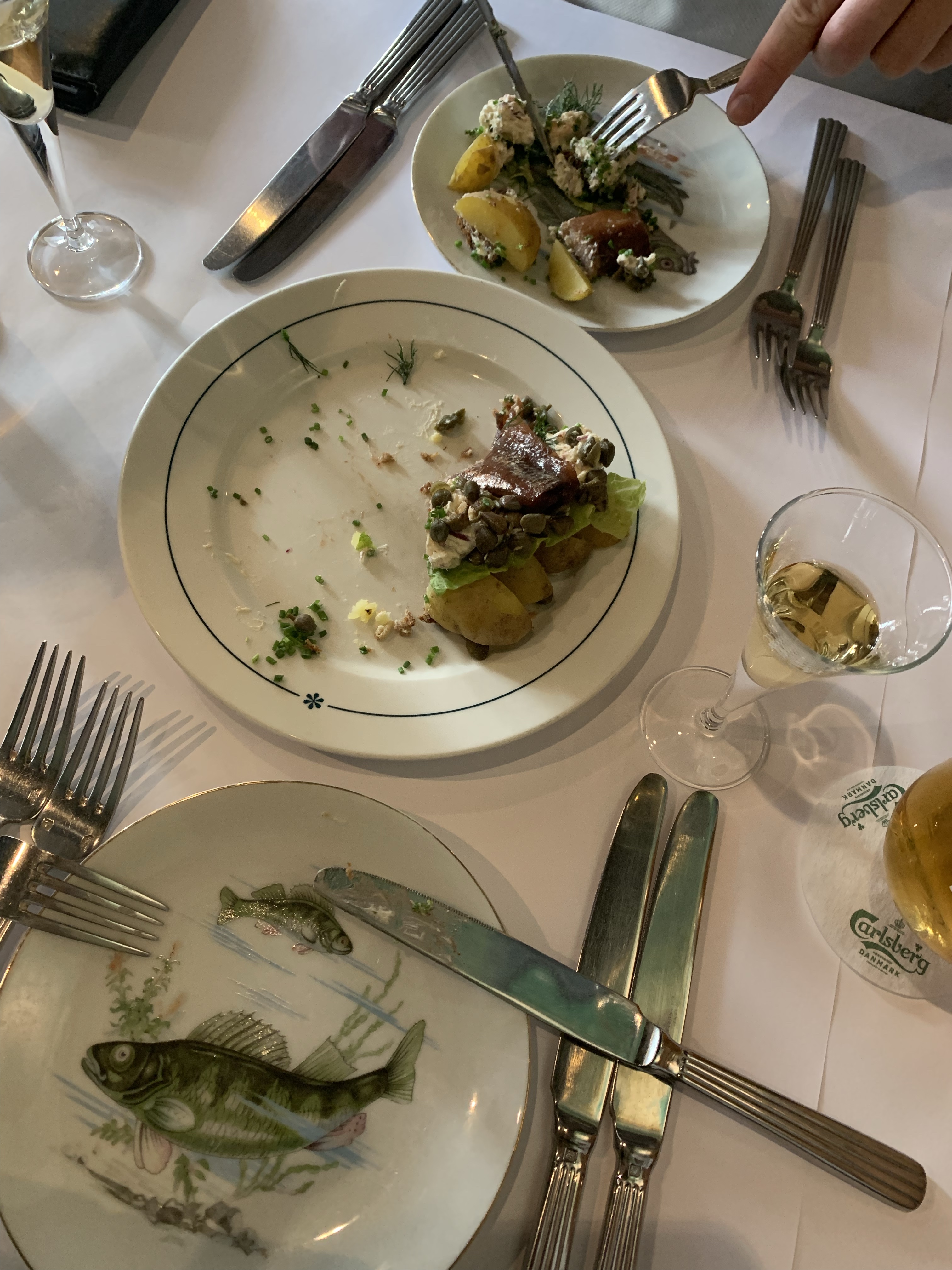 Anticipating an exceptional dining experience, we made an advance reservation for 11:30. Our expectations were surpassed as we discovered the popularity of Schonneman restaurant; it was fully booked from the moment its doors opened. The attentive and humor-filled staff set the tone for our memorable visit. Our culinary journey commenced with a Danish beer, expertly recommended by the waiter, who also guided us to a delightful Acquavit pairing for our meal.