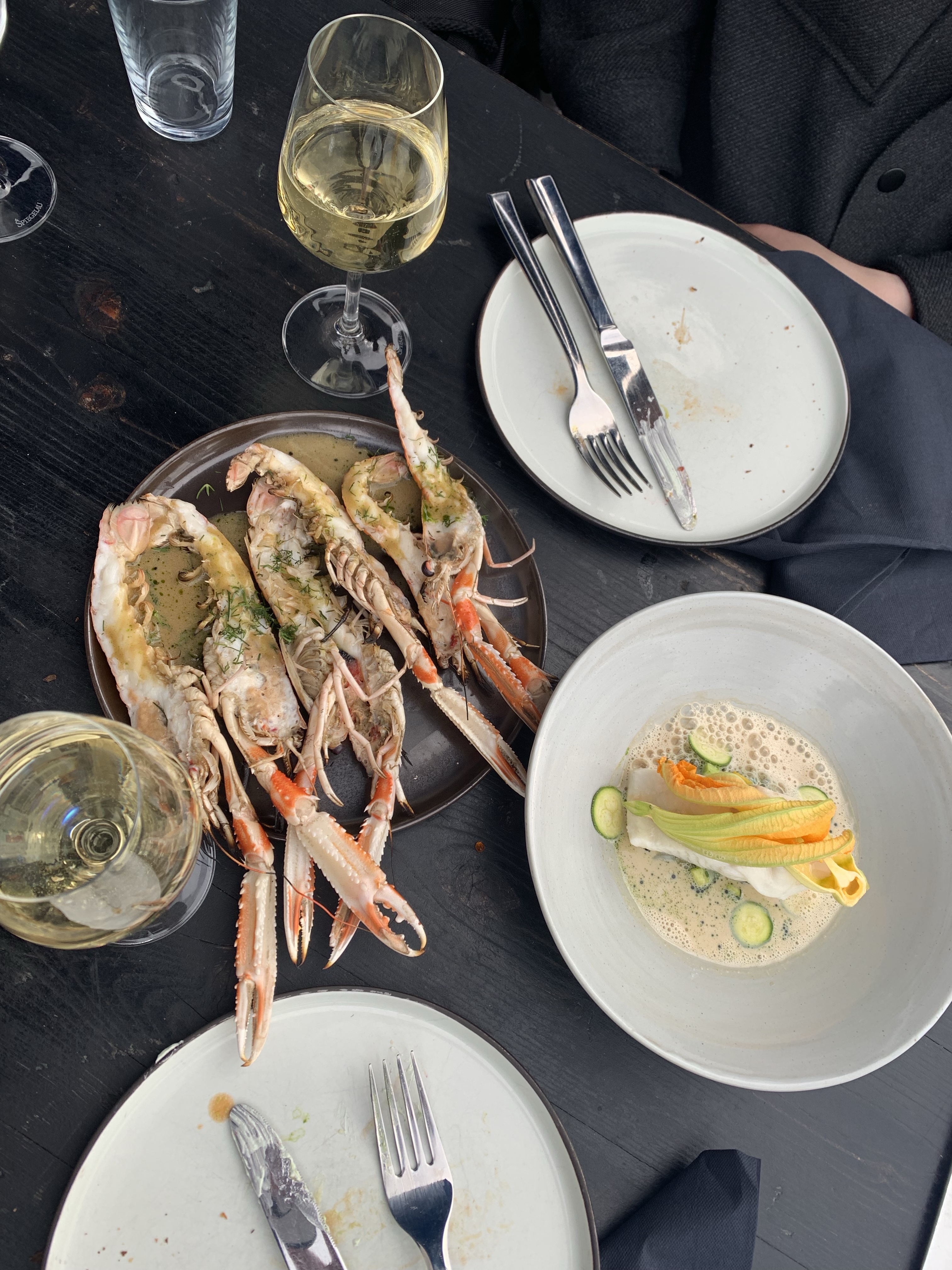 For the main course, we indulged in the exquisite flavors of Norwegian Halibut accompanied by razor clam, courgette, and tomato (245 DK), and savored the succulent taste of Swedish Grilled Langoustines enhanced with seaweed and lemon (295 DK).