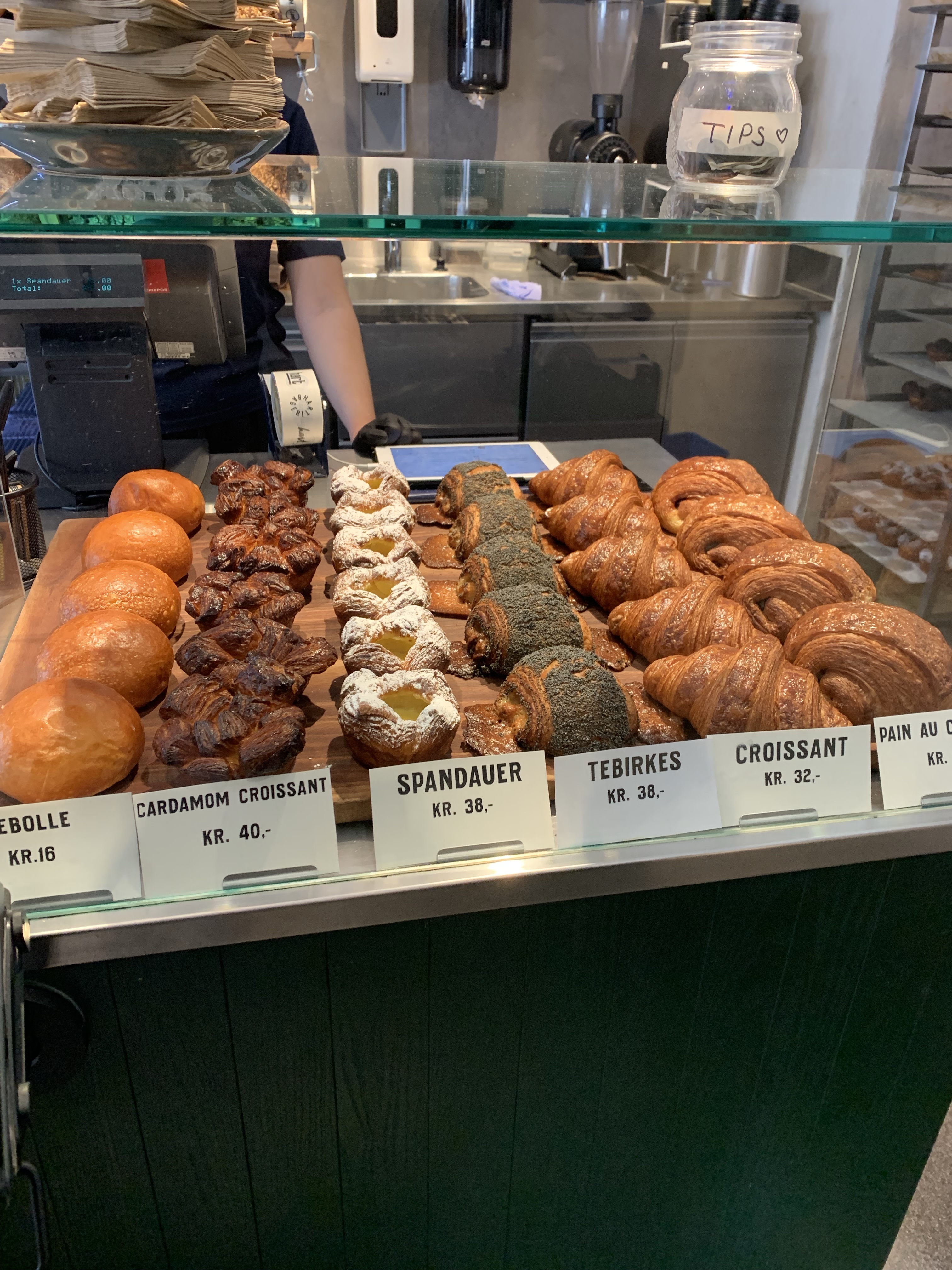 This unique local bakery stands out as a true gem. With its exceptional reputation and an extensive array of freshly baked goods and pastries, it’s truly a haven for enthusiasts of delectable treats. During our visit, we were drawn to the exquisite Kardemom croissant (40DK) and the tantalizing Pandancake (around 25 DK).