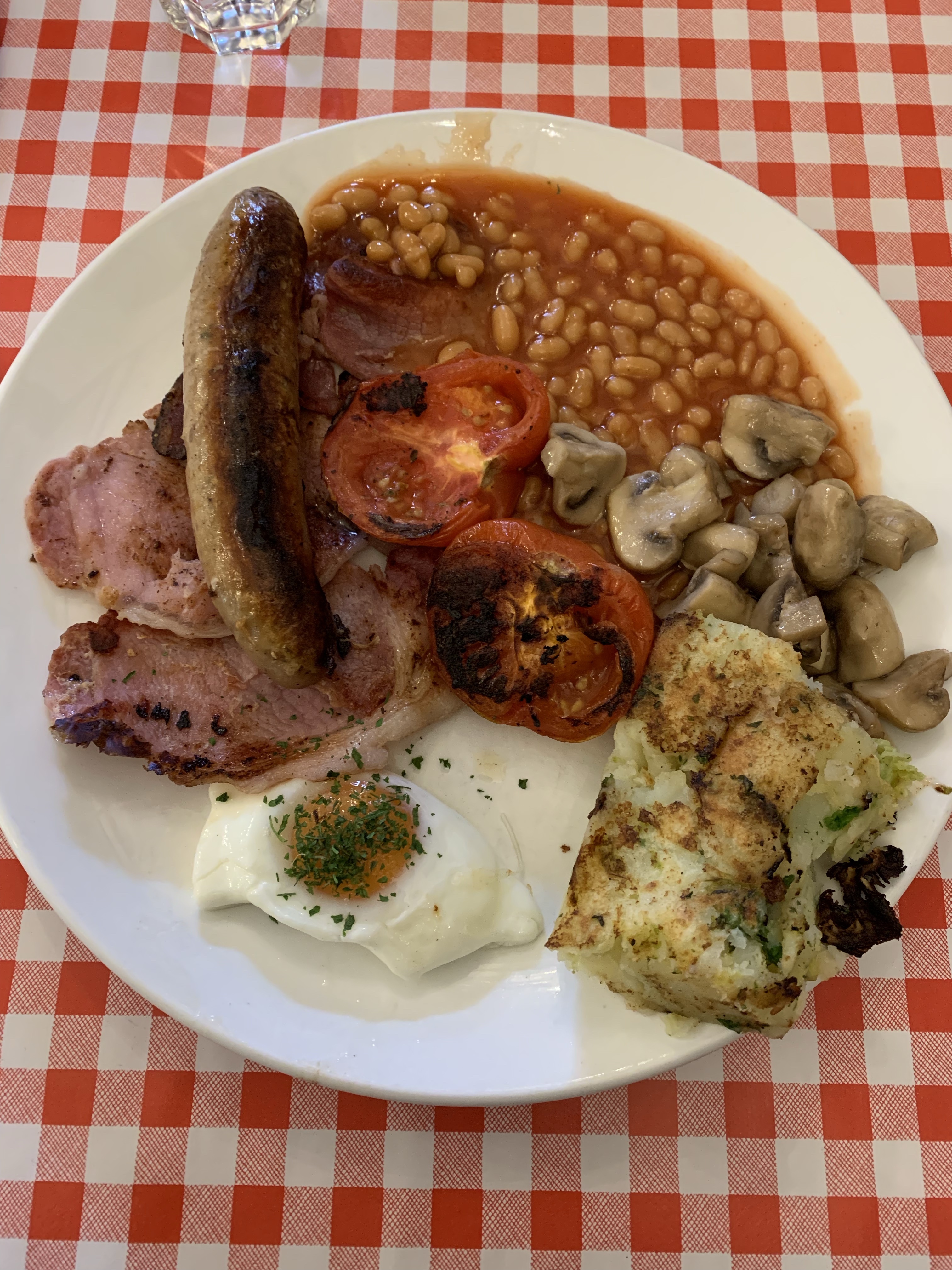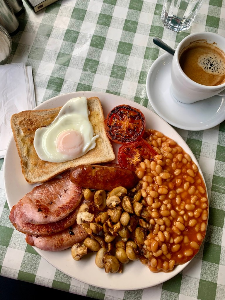 I had expected a long wait due to the café’s many reviews, but luckily a table was available immediately. I sat among a mix of tourists and longtime locals, all eager for a friendly chat. I ordered the classic English breakfast set, which was absolutely massive; enough to cover two meals. It had everything you’d expect from a traditional English breakfast: eggs, bacon, sausage, beans, tomatoes, mushrooms, and more.