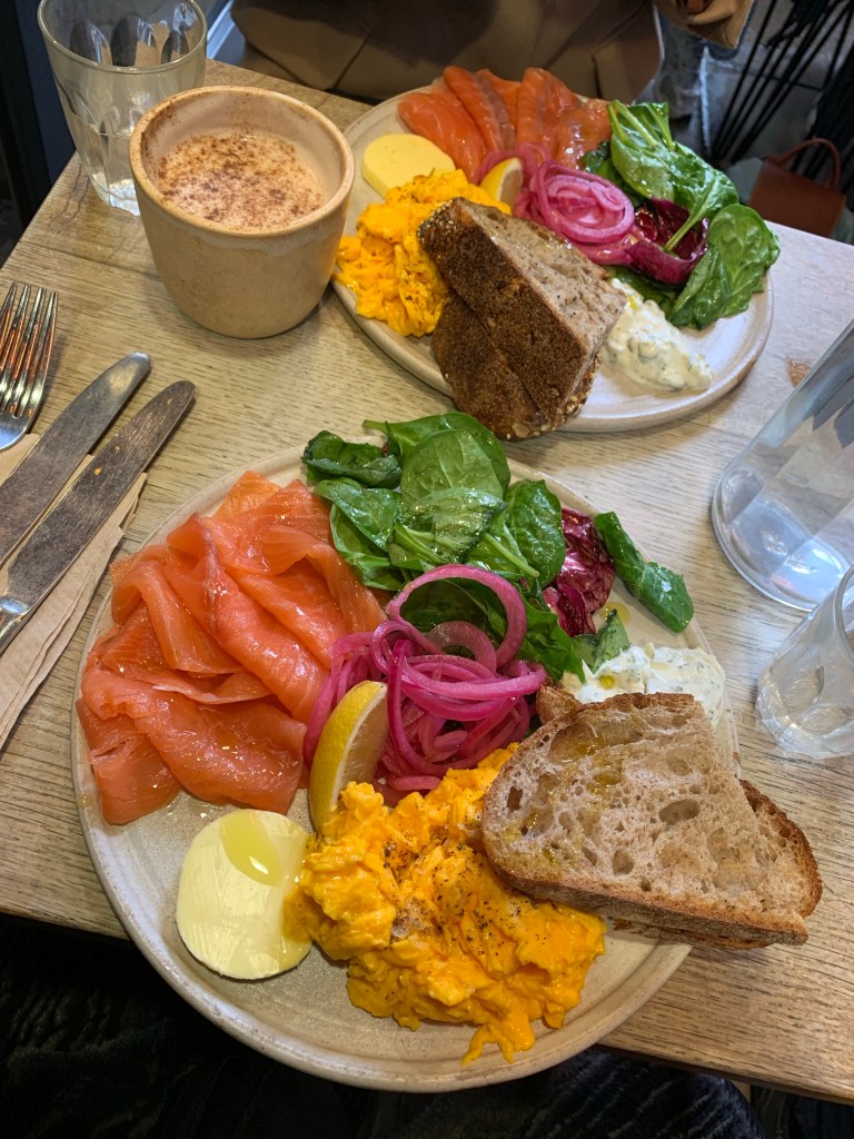 One of London’s most well-known breakfast spots has to be 26 Grains. It’s primarily a self-service café, which gives it a casual and relaxed vibe. We chose to sit outside and ordered the Scrambled Eggs with Salmon. The dish was absolutely delicious, featuring some of the freshest salmon I’ve ever had.