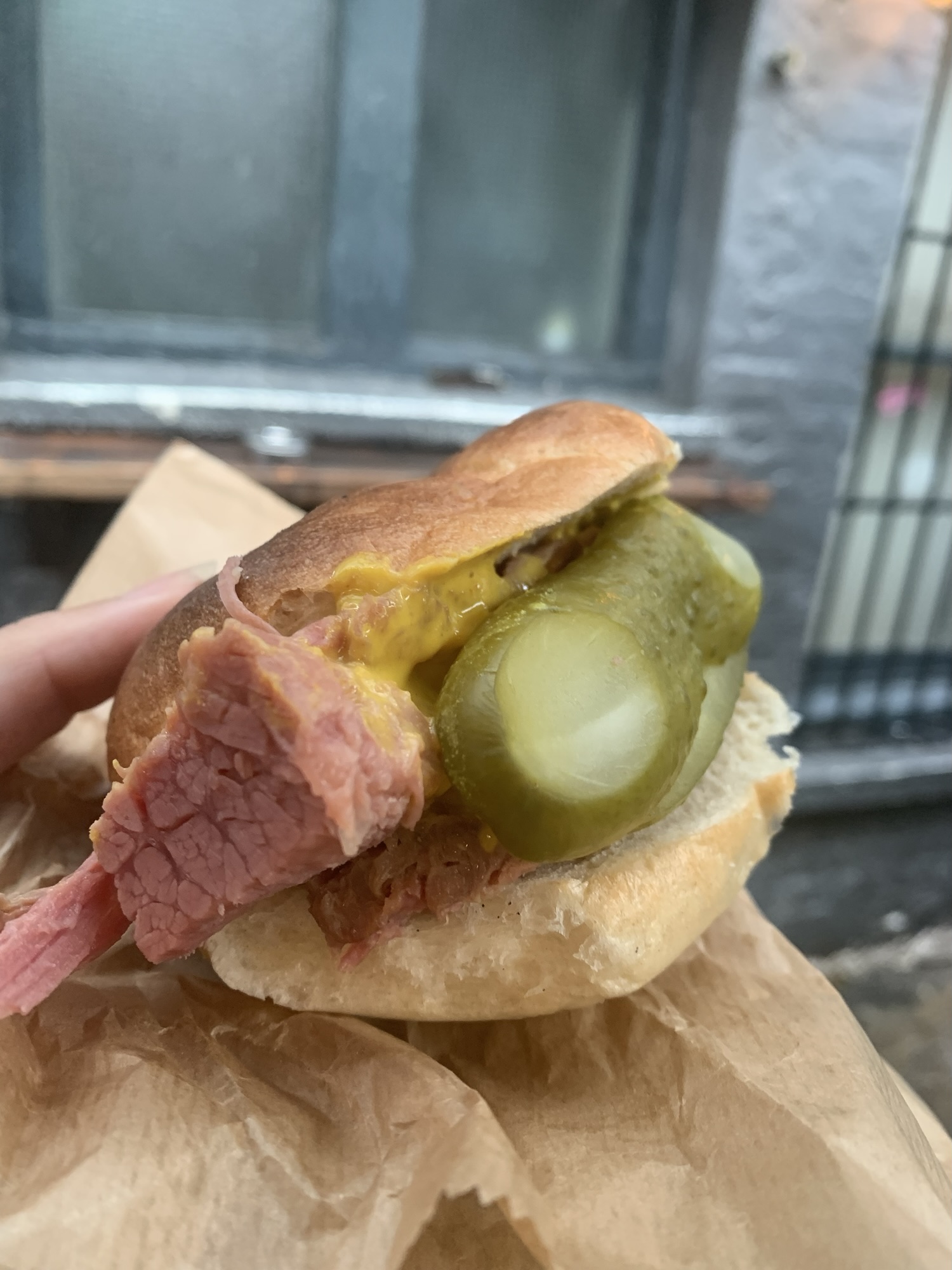 We ordered the classic Salted Beef Bagel (£6.60) and the Tuna Salad Bagel (£3). The salted beef bagel was outstanding; the meat was incredibly tender and easy to bite into, far softer than I expected. The beef paired perfectly with the mustard and gherkins, creating a simple yet delicious flavor combination.