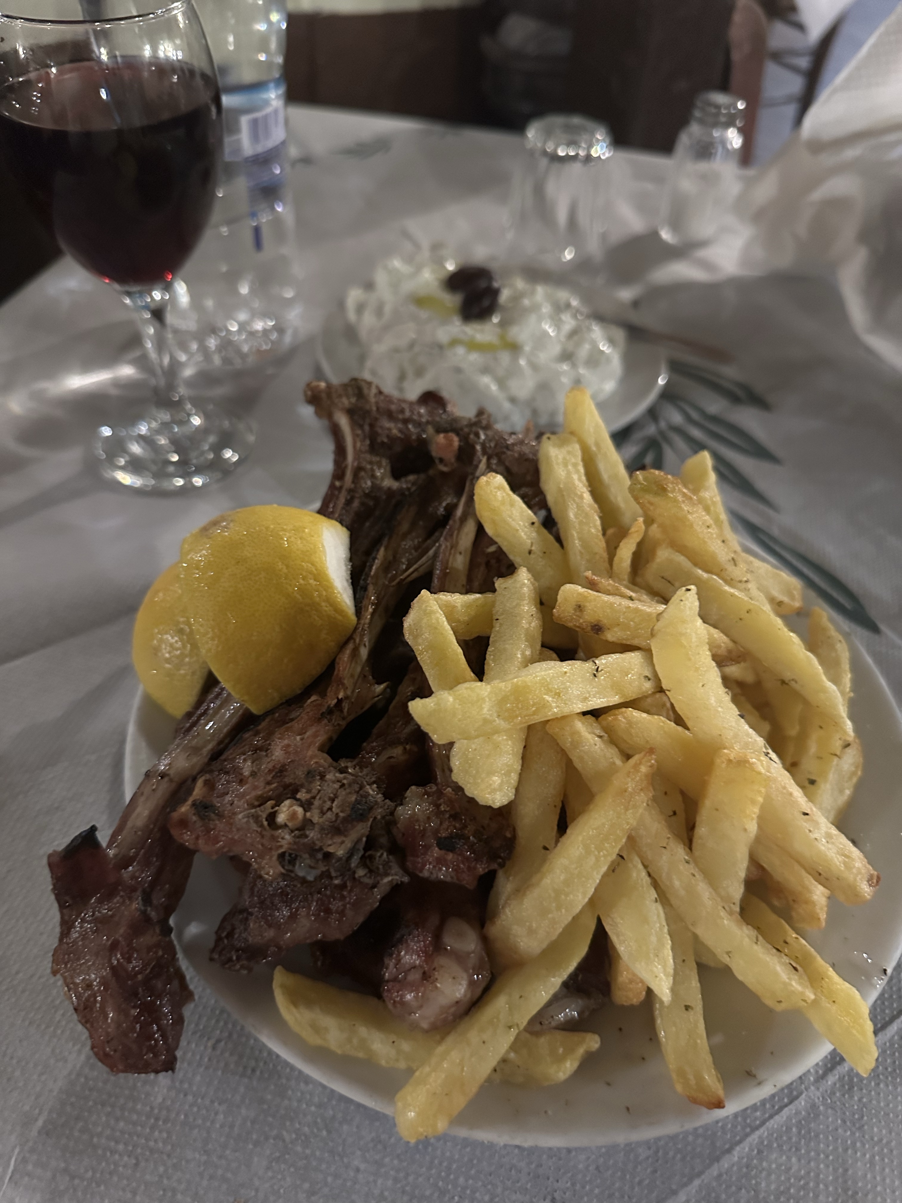 I had read that Karavitis is known for its païdakia (grilled lamb chops), so of course, I had to try them and they didn’t disappoint. Juicy, well-seasoned, and straight off the grill, the lamb paired perfectly with the creamy, garlicky tzatziki (€5) I ordered on the side. I washed it all down with a glass of Greek red wine, and together it made for a simple but memorable meal.