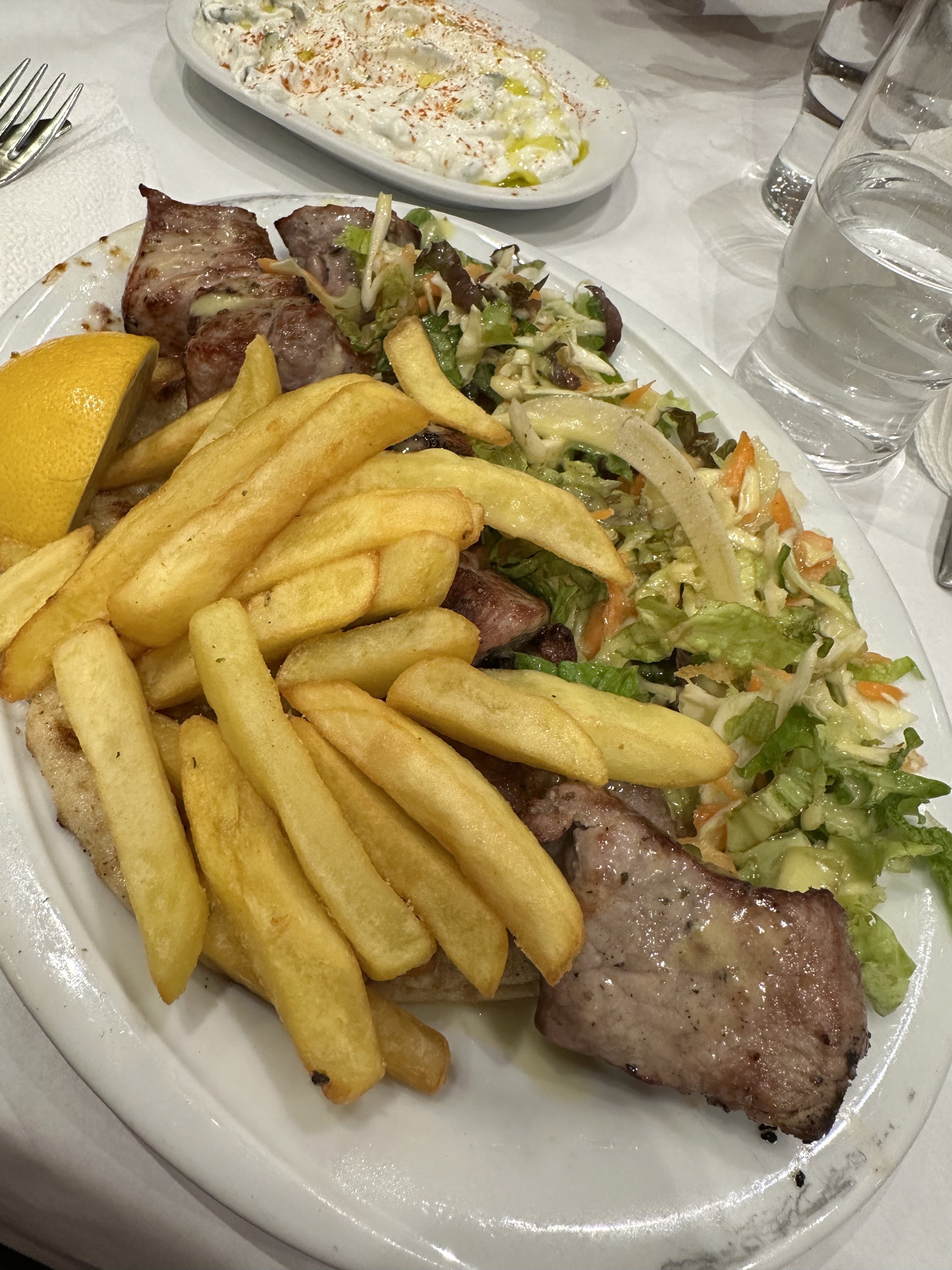 We also ordered a portion of Tzatziki (€4.80), fresh, garlicky, and exactly what you hope for, and of course tried the classic Pork Souvlaki (€9.90), which was well-seasoned and nicely grilled, but slightly overshadowed by the star-quality kebabs.