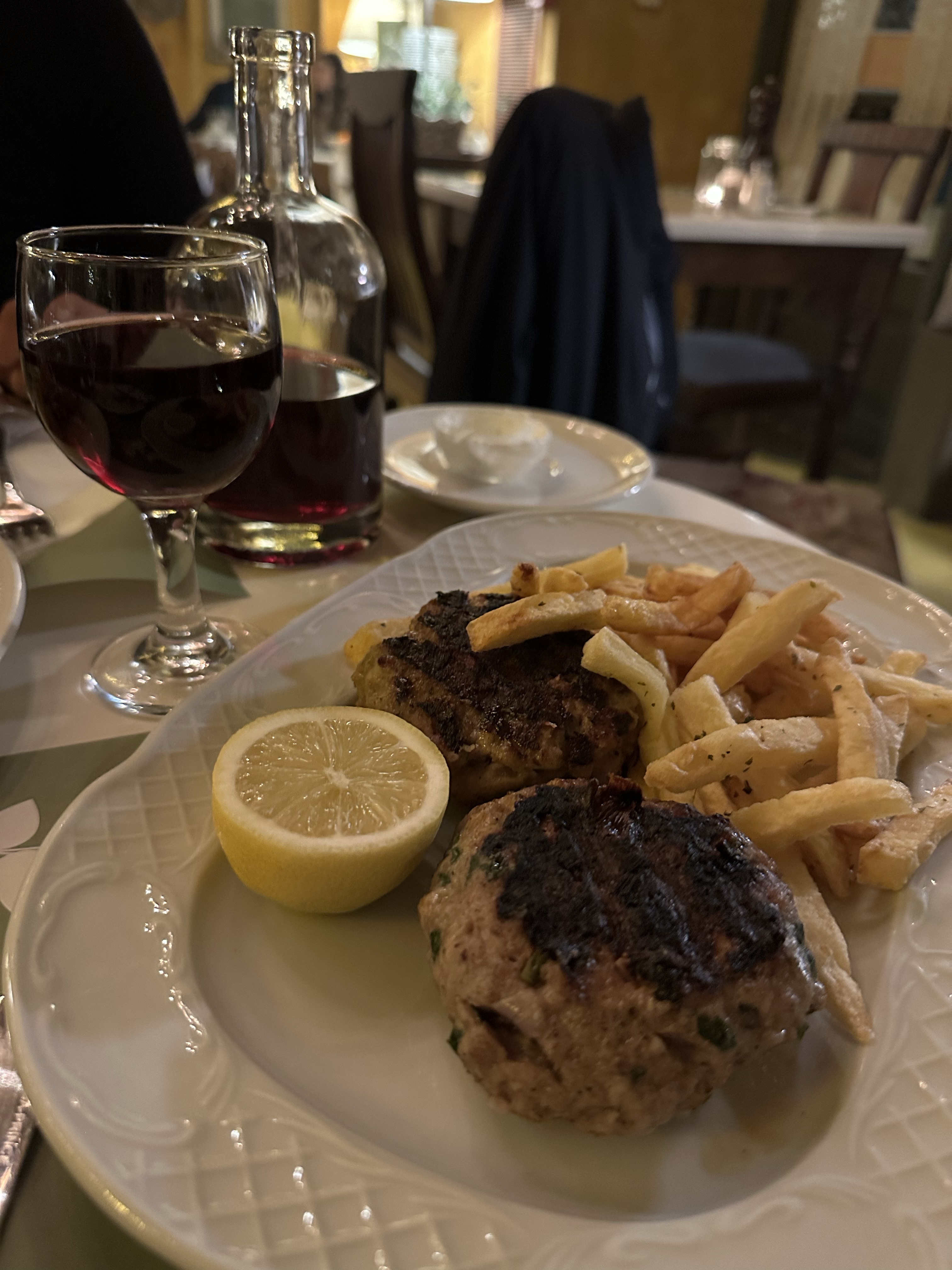 - Biftekia with blue cheese (€13) – the absolute standout for me. The sharpness of the blue cheese paired beautifully with the juicy, well-seasoned beef patties. Not something you often see on a typical Athenian menu, and a total win.