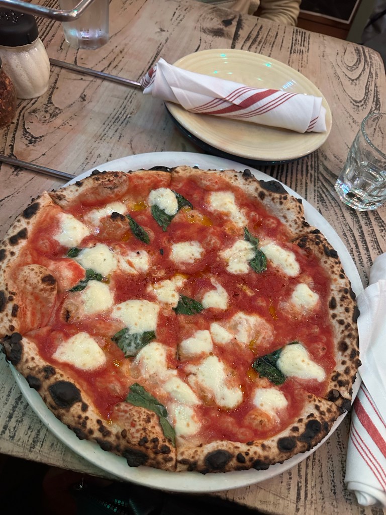 We waited in line for about an hour, but the buzzing energy outside Tony’s made the time pass quickly. Once seated at a cozy outdoor table, we dove into the award-winning pizza menu. One immediately stood out; the Margherita, which won the World Pizza Cup in Naples. Only 73 are made per day, adding to its reputation and exclusivity.